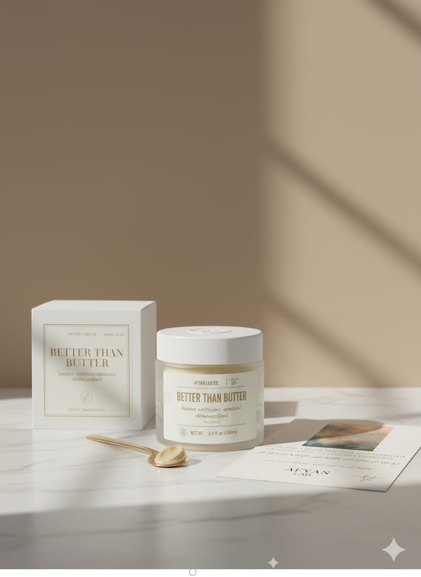 Découvrez Better Than Butter, le baume nettoyant et démaquillant d’Afyan Lab Co. conçu pour offrir à votre peau une expérience de douceur absolue.
